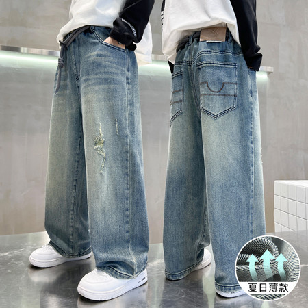 儿童装牛仔裤男童夏款裤子直筒夏季薄款阔腿裤男孩防蚊中大童长裤
